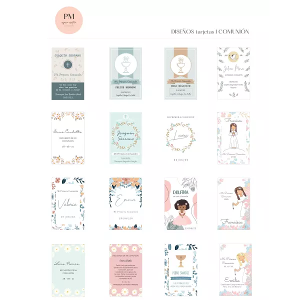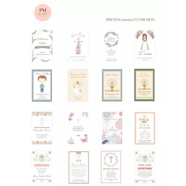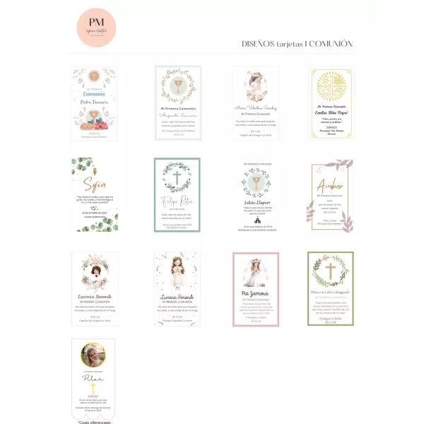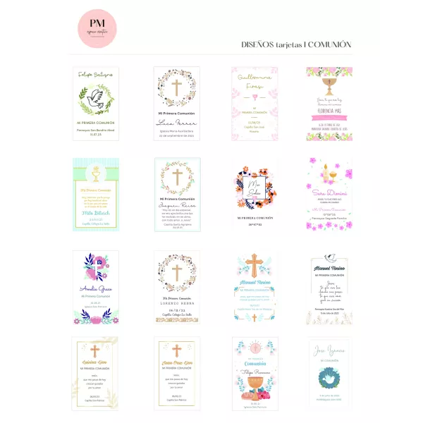Tarjetas de comunión de 7,5 x 12 cm, impresas una cara, en ilus 250 gr. + caja de entrega + corte especial al final y stamping (dorado o plateado), x 40 unidades.